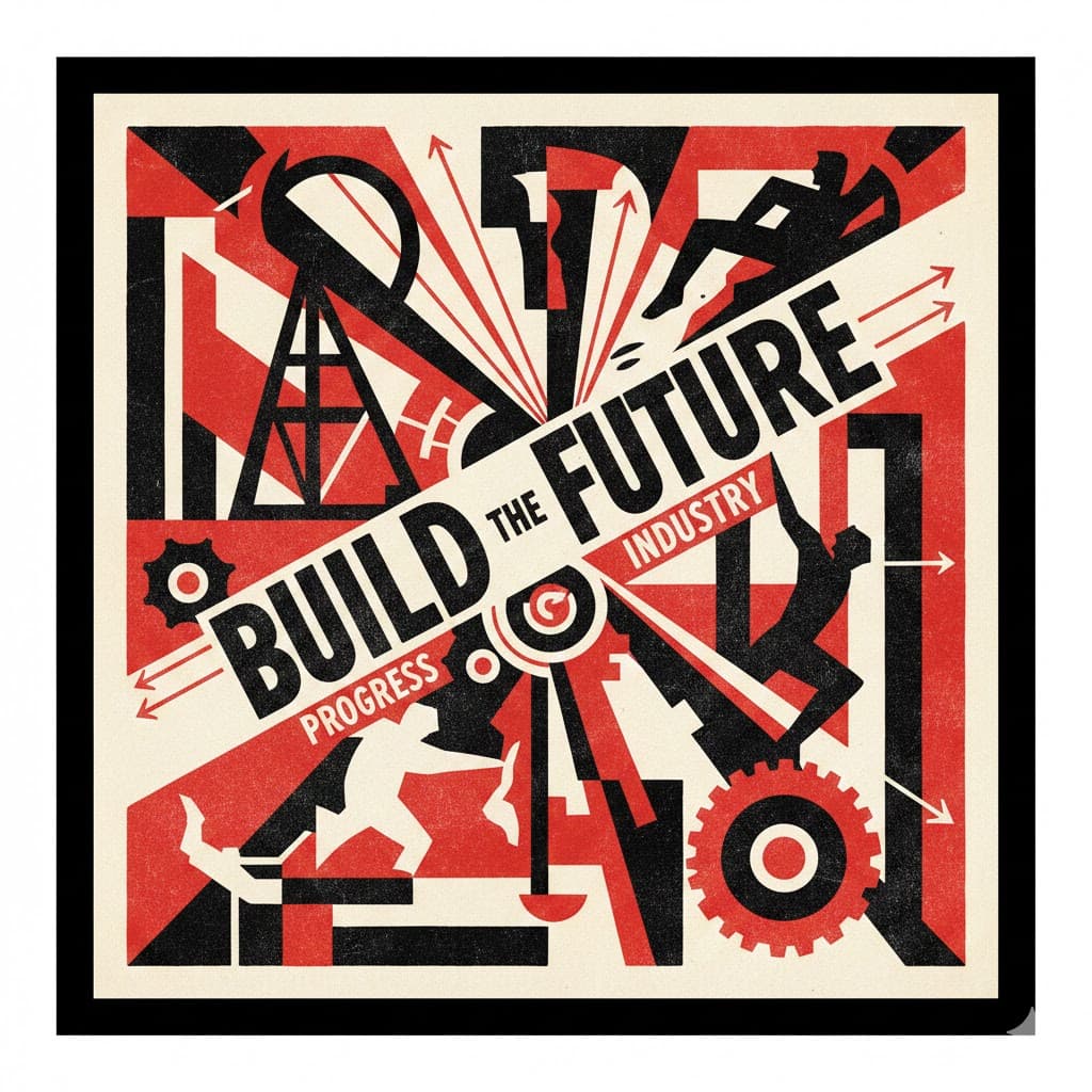 Constructivism, red and black like Russian posters, strong diagonal compositions