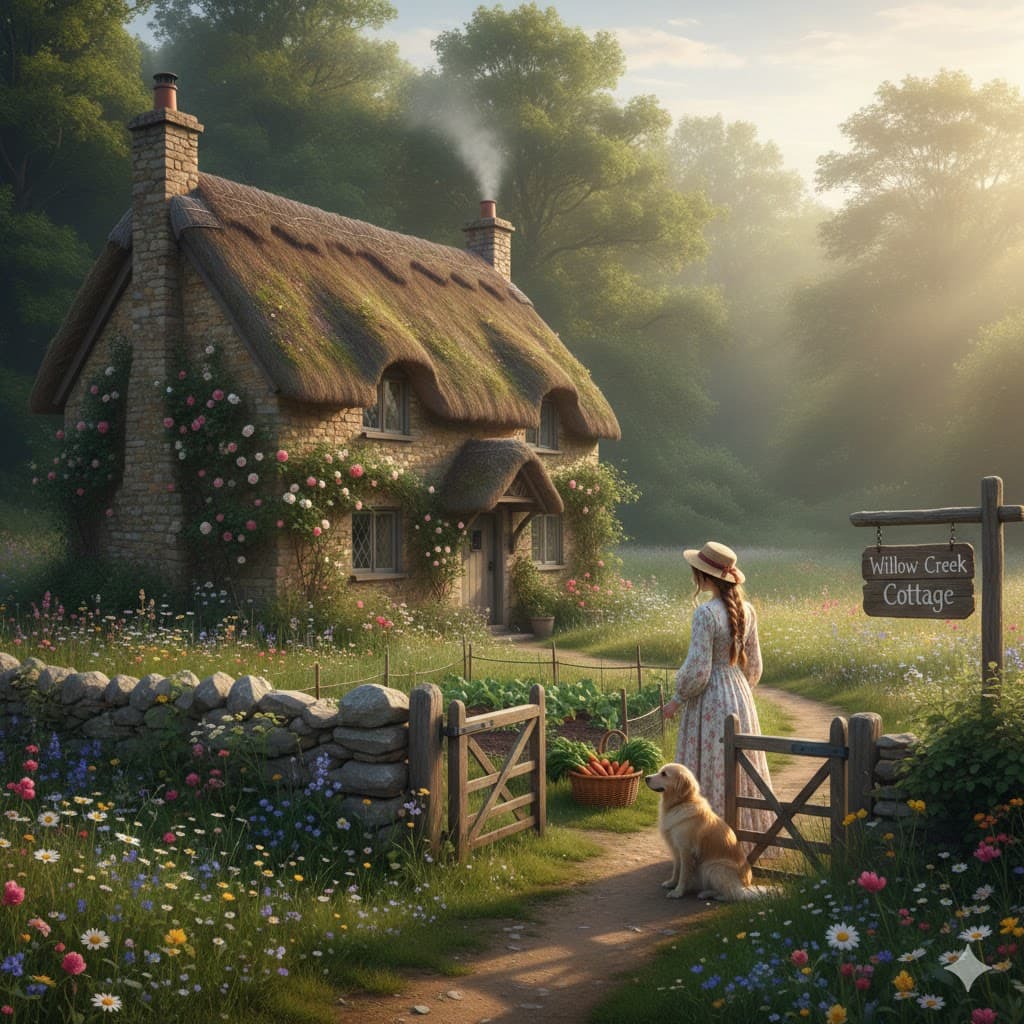Cottagecore, country houses, floral patterns, baking, the cozy countryside vibe of warm sunlight
