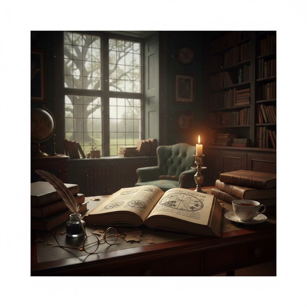 Dark Academia, Harry Potter/libraries, tweed jackets, worn books, an intellectual autumn atmosphere