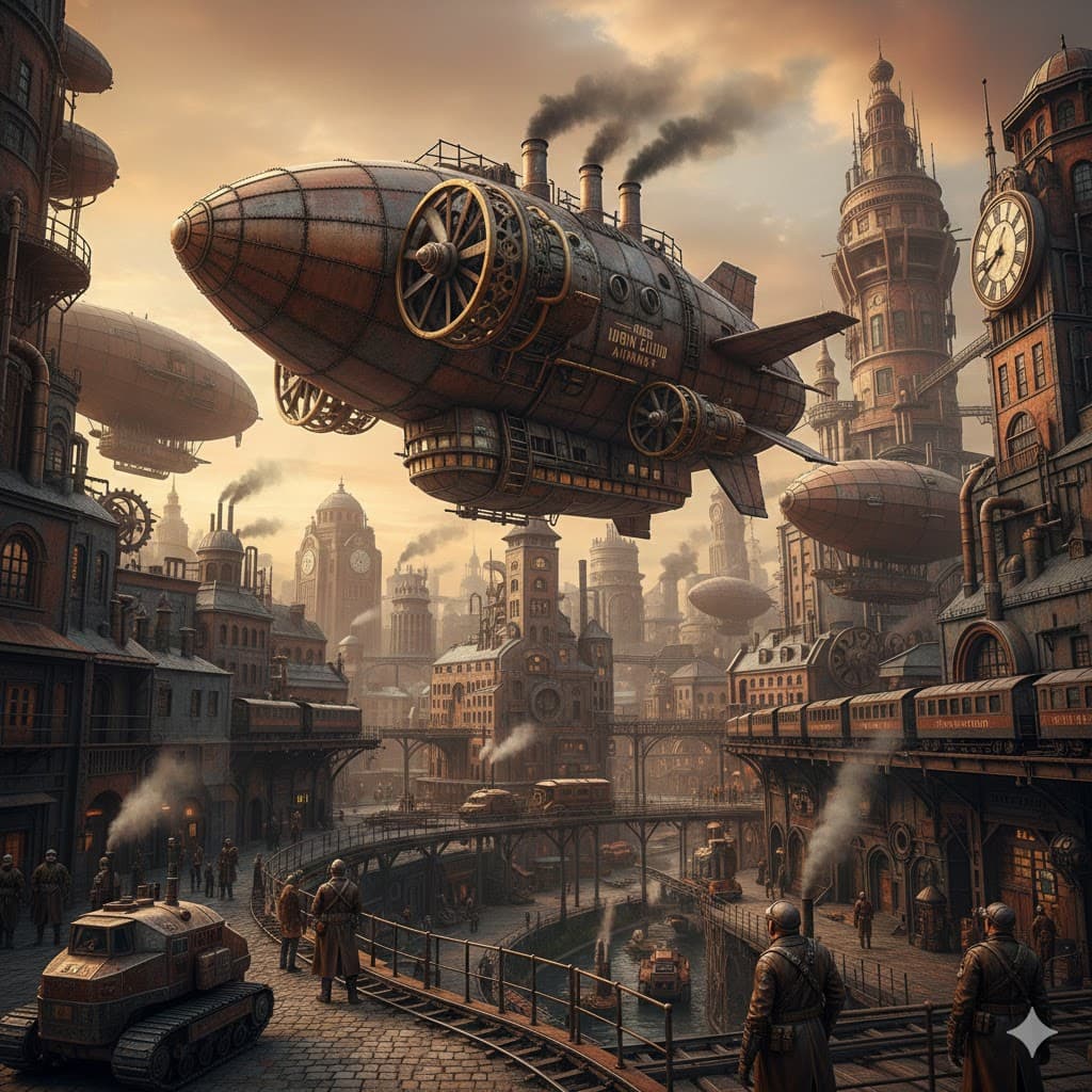 Steampunk, steam engines, clockwork, brass goggles, Victorian-era visions of the future