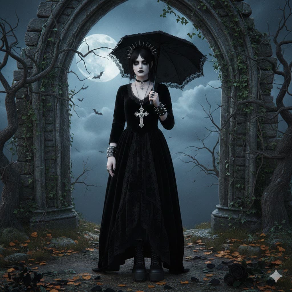 Goth, black, crosses, pale skin, dark and decadent beauty