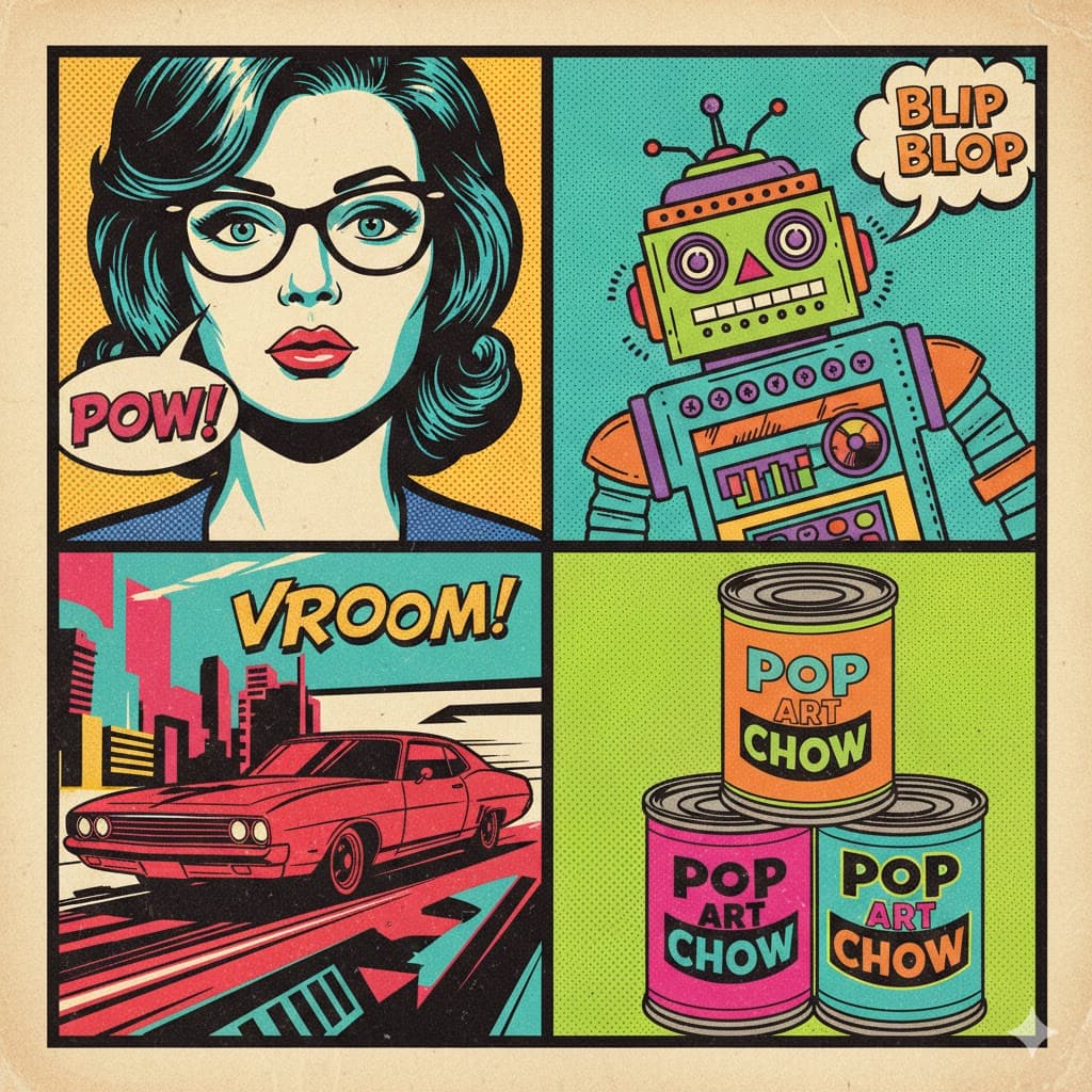 Pop Art, Andy Warhol, expressing images of pop culture with intense primary colors and repetition