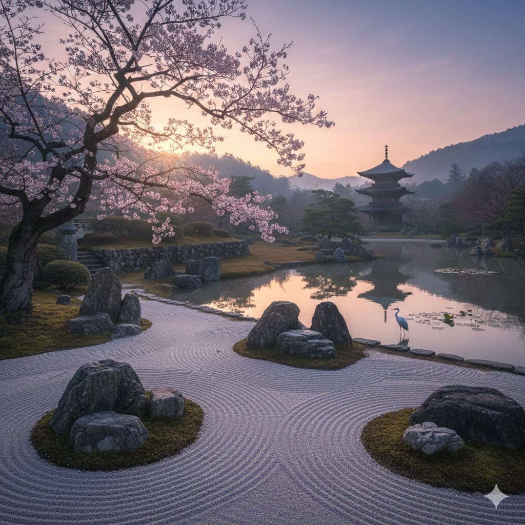 Serene/tranquil, a meditative atmosphere that makes your mind feel at ease