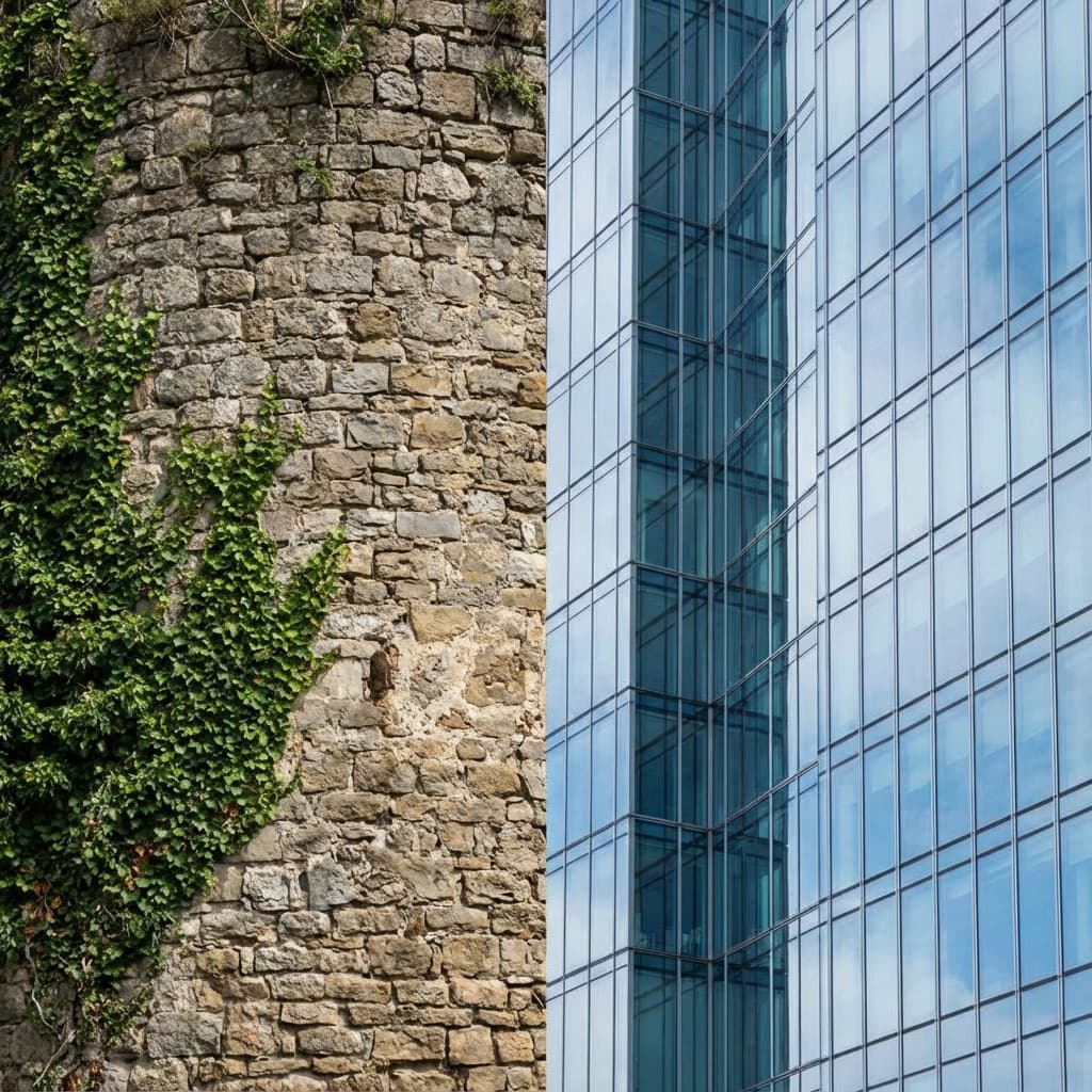 Juxtaposition/contrast, place big and small things, old and new things side by side to create a contrasting effect