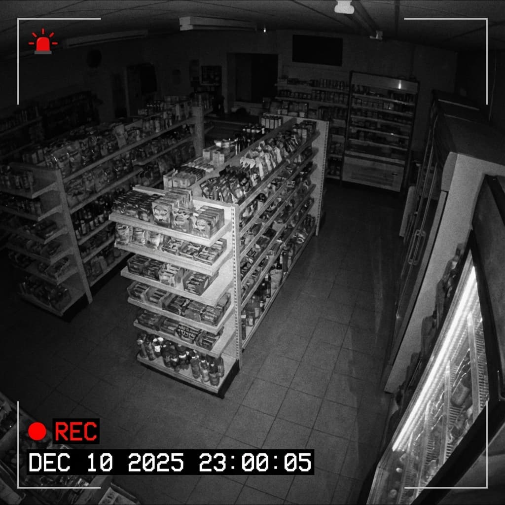 CCTV view, a rough, surveilling, and cold feeling looking down from above