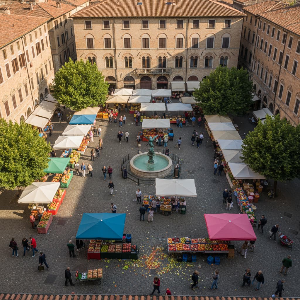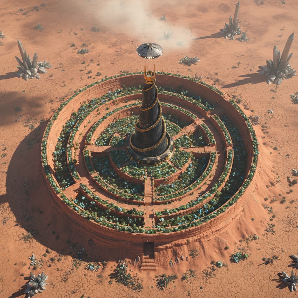 God’s-eye view / bird’s-eye view, a map-like view looking vertically down over a wide area from a very high place