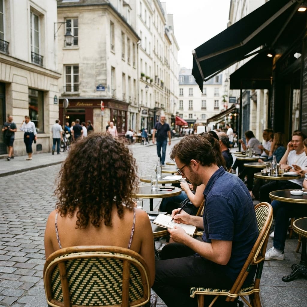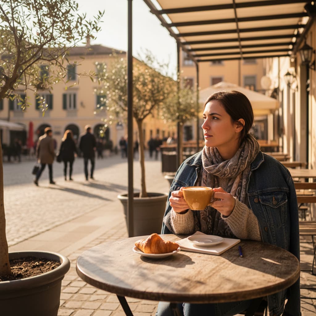Back view, does not show the face, giving a sense of mystery or making the viewer focus on the scenery the subject is looking at