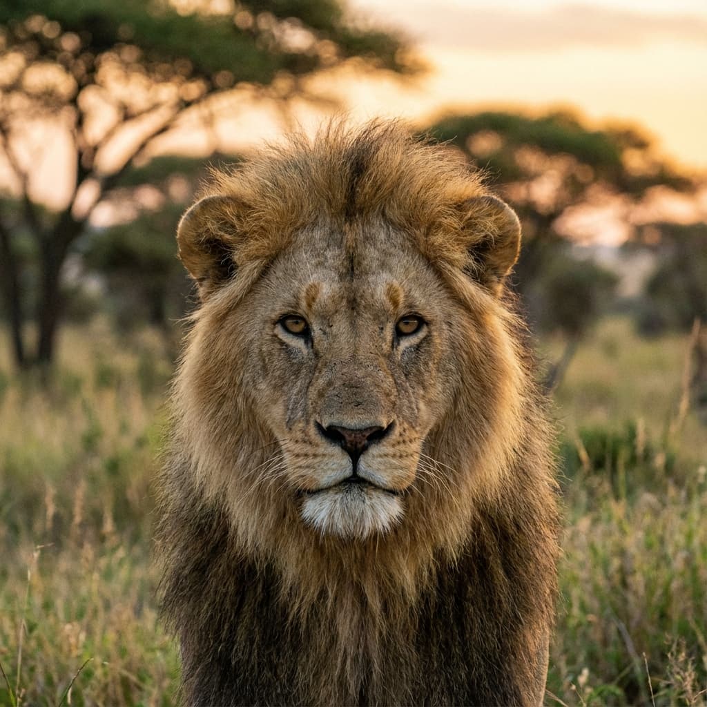 Long telephoto, feels like seeing a distant lion right in front of you, background compression effect is maximized
