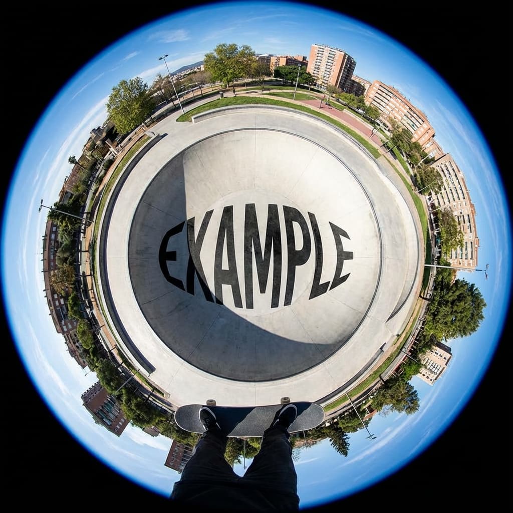 Fisheye lens / 8mm, the world is rounded and distorted like a fish’s eye, 90s hip-hop music video vibe