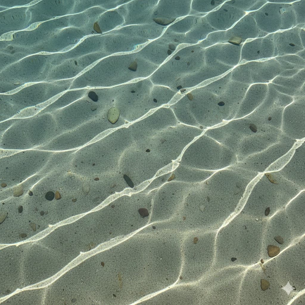Caustics, shimmering mesh patterns of light created by refraction on a glass of water or the bottom of a swimming pool