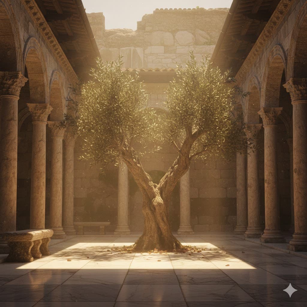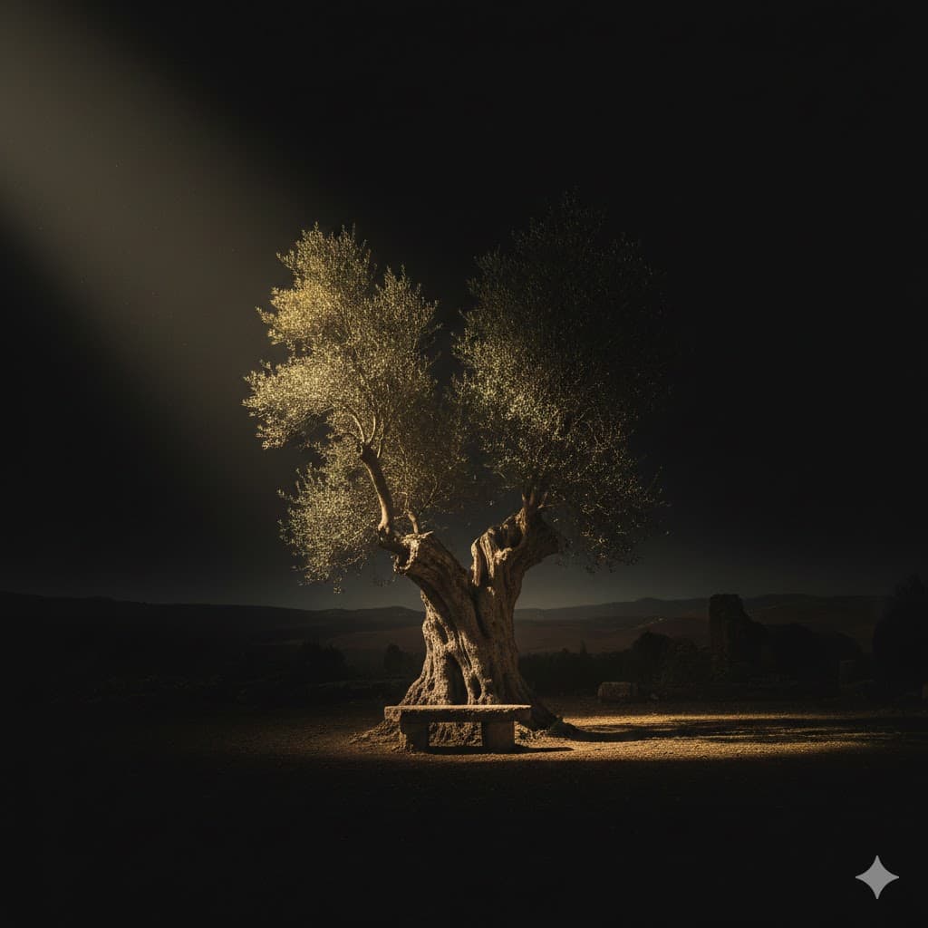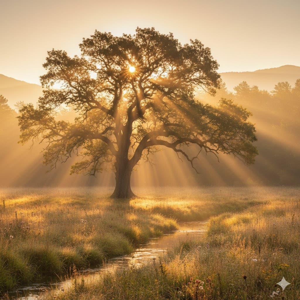 Volumetric lighting, a visible beam of light cutting through fog or dust, giving a sacred and majestic feeling