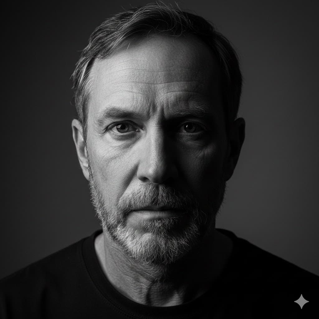 Hard lighting, small and strong light source, razor-sharp shadow edges and strong contrast, intense masculinity or noir
