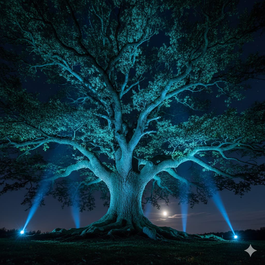 Uplighting, shining from below to above, creates a bizarre or intimidating atmosphere like a horror movie
