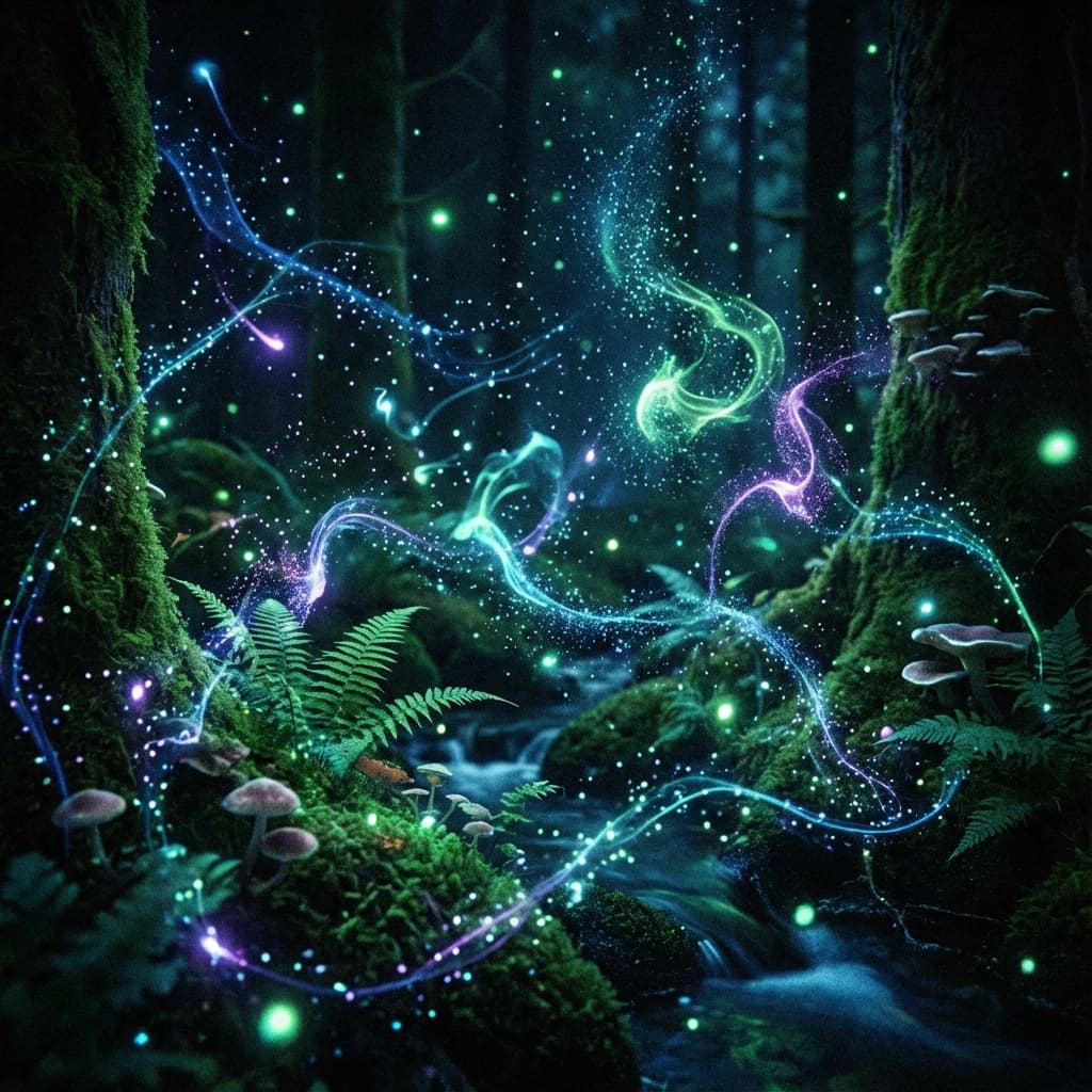 Bioluminescent particles, mysterious spores that emit blue light on their own, like in the movie Avatar