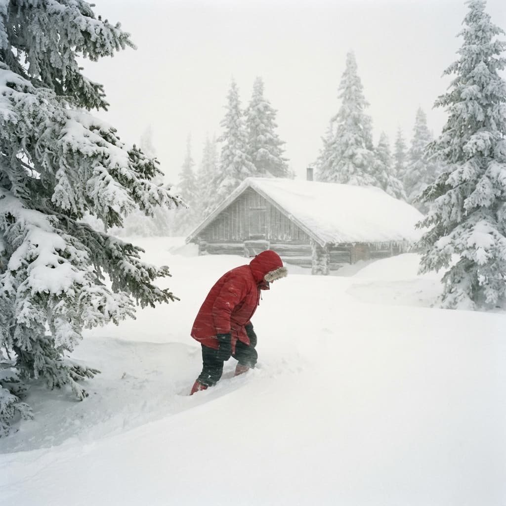 Blizzard, rough snow blown by strong winds that blocks visibility