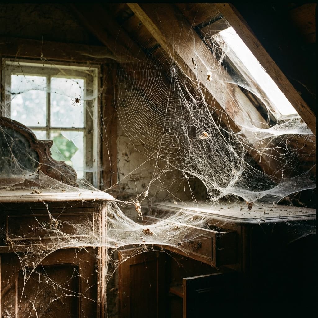 Cobwebs, detailed touches in the corners of old abandoned houses or caves