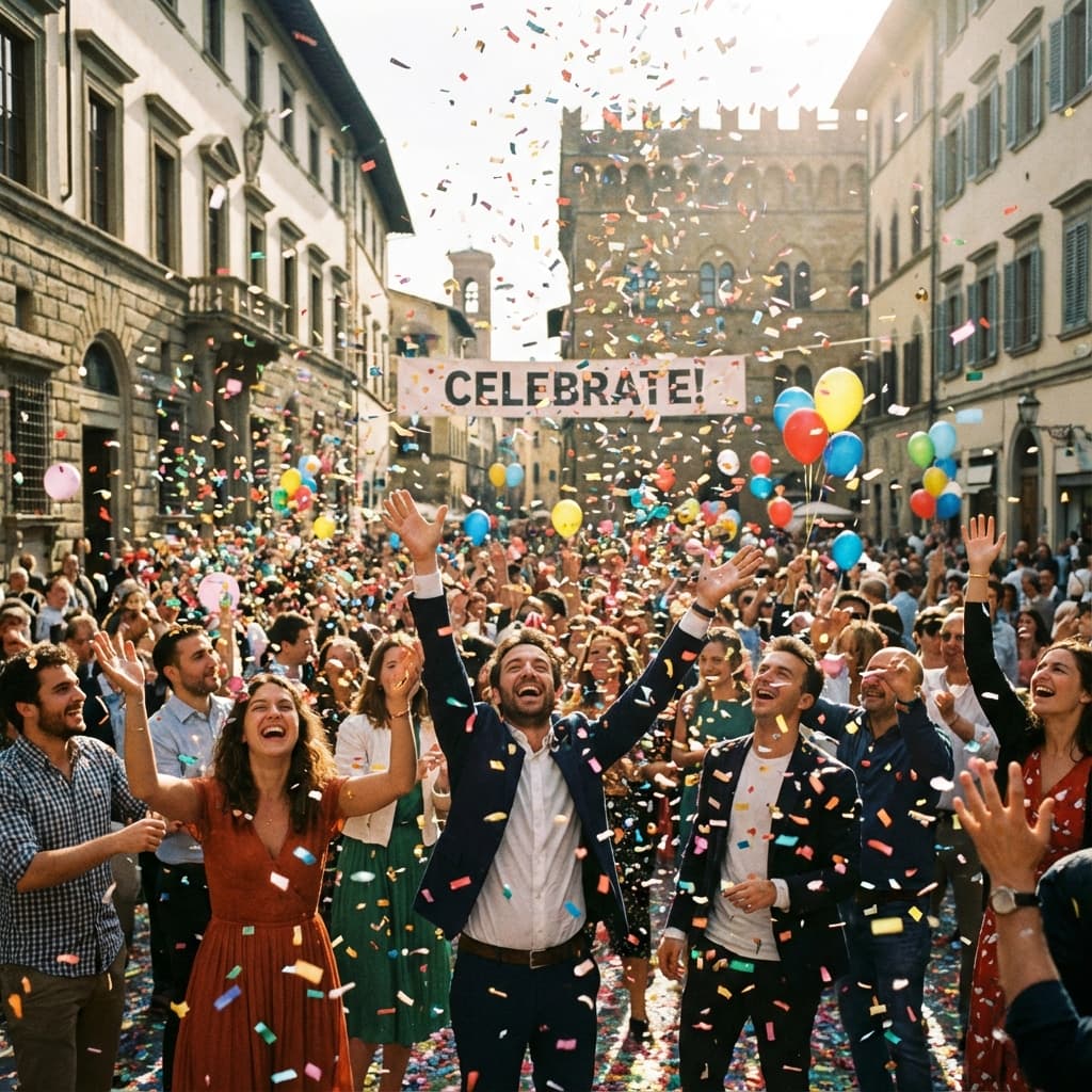 Confetti/paper bits, colorful pieces that create a party or festival atmosphere