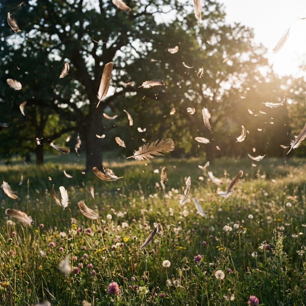 Feathers, feathers floating in the air as if an angel or bird has just passed by