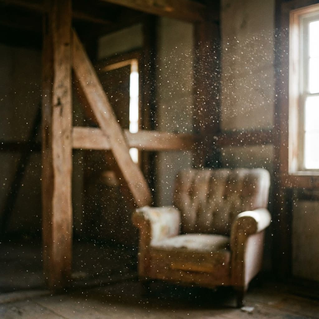 Floating dust/dust motes, tiny particles that sparkle and drift when sunlight comes in