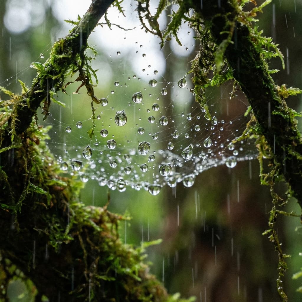 Raindrops, particles of rain that look as if frozen in midair