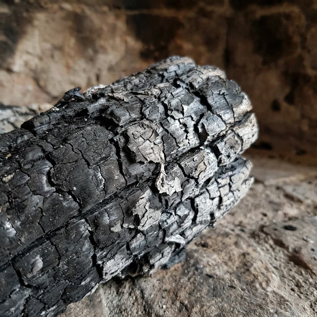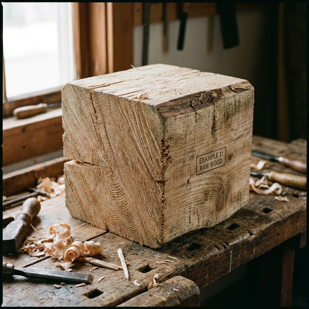 Unprocessed wood, rough and seemingly dusty with sawdust