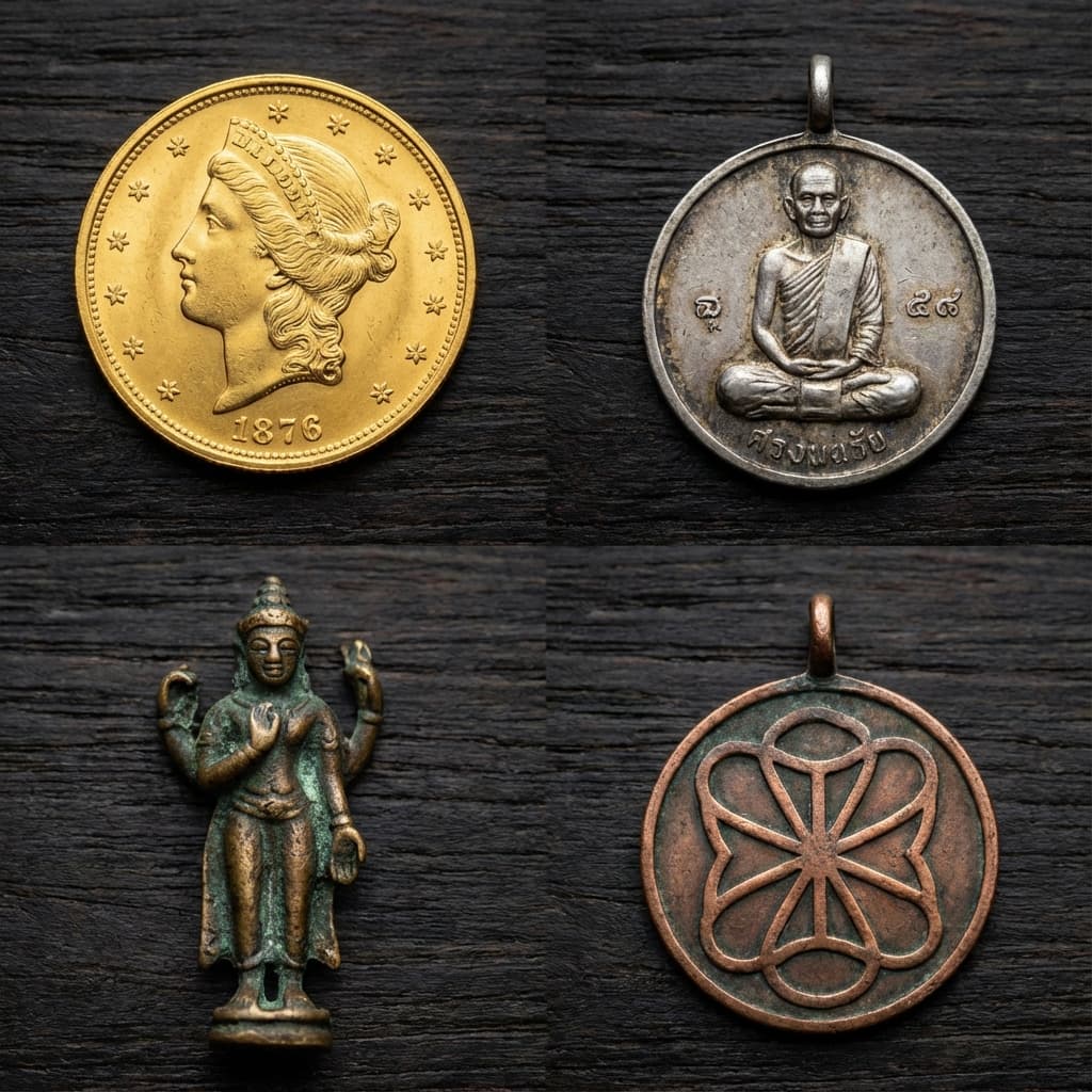 Gold / silver / bronze / copper, each metal’s characteristic color and luster