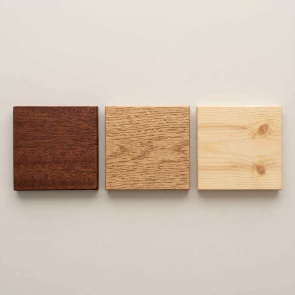 Mahogany / oak / pine, color variations by wood species such as reddish, brown, and light tones