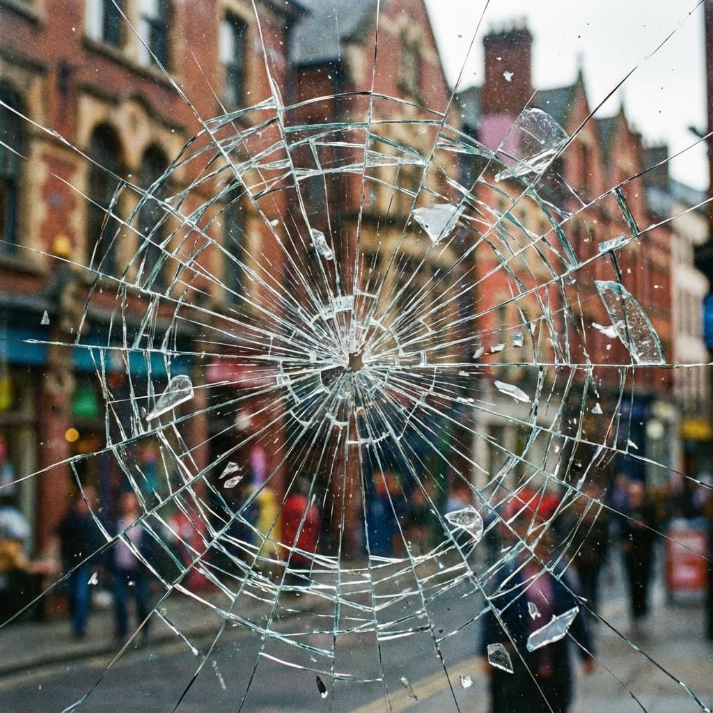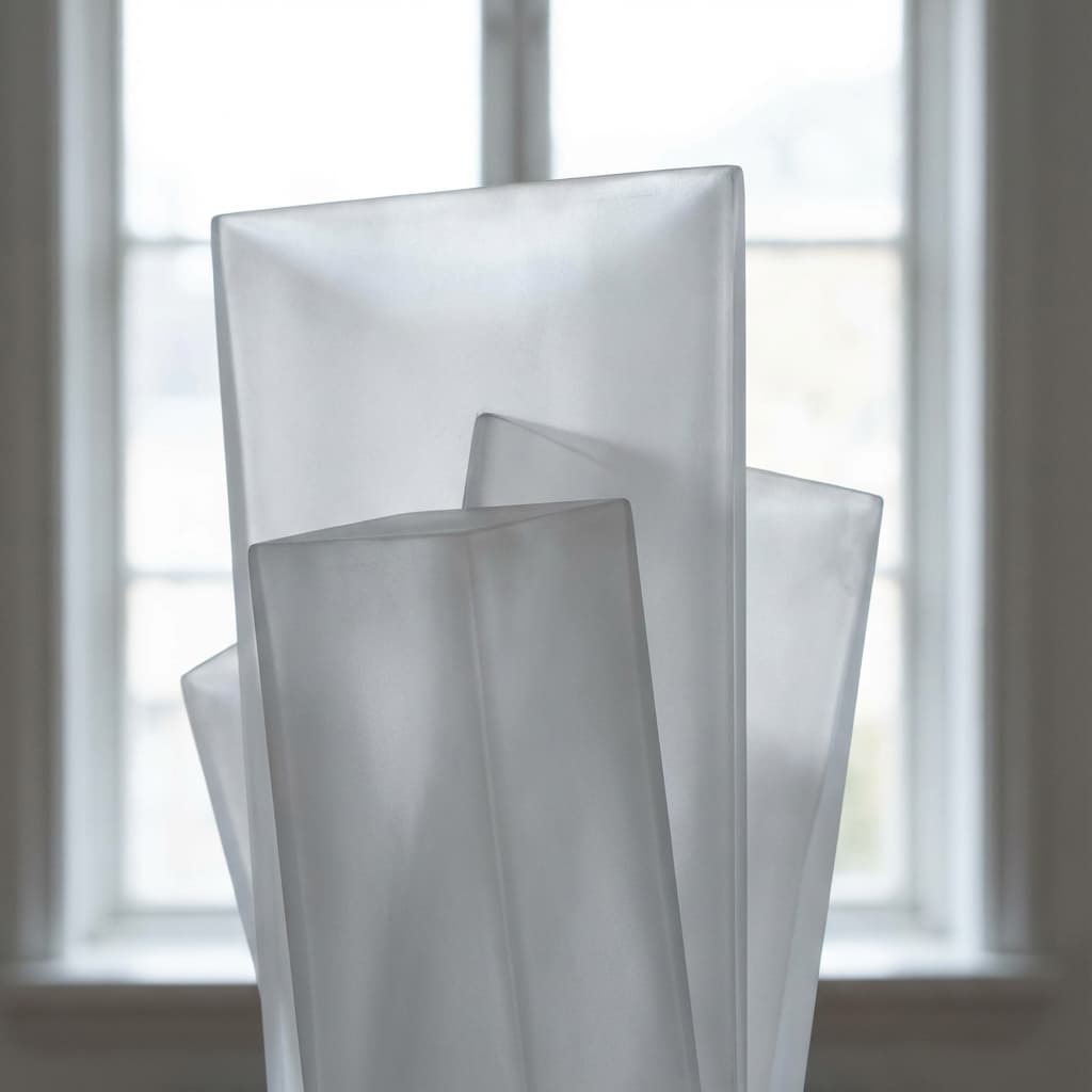 Frosted glass, bathroom-glass-like surface that is cloudy so the back appears blurry