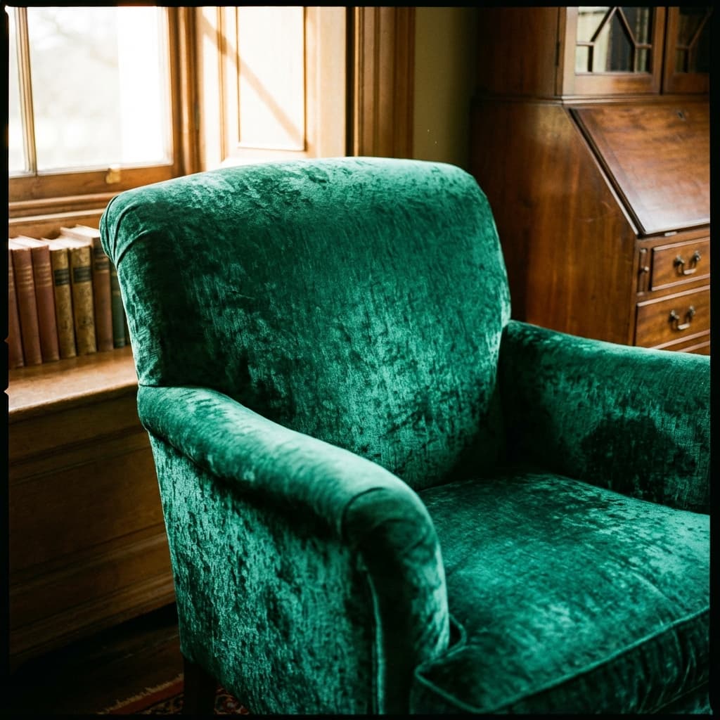 Velvet, a fabric with soft pile that catches light and gives off a luxurious sheen