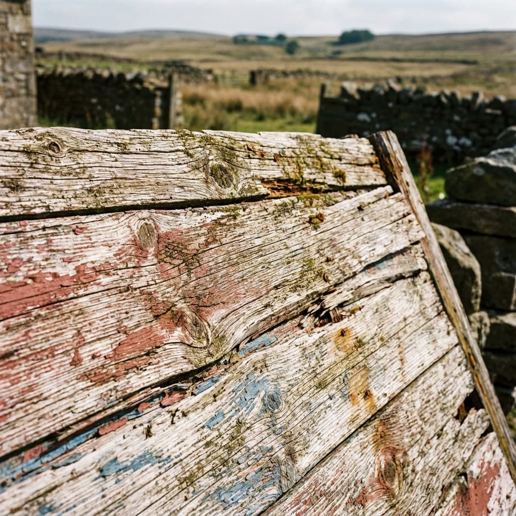 Weathered wood, faded to a grayish tone like an old cabin or driftwood