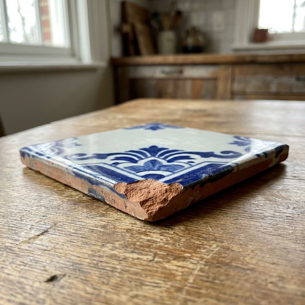 Chipped, traces where the rim of a cup or pieces of paint have broken off