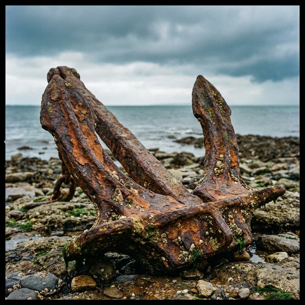 Corroded, metal surfaces melted away or roughened by acidic substances or seawater
