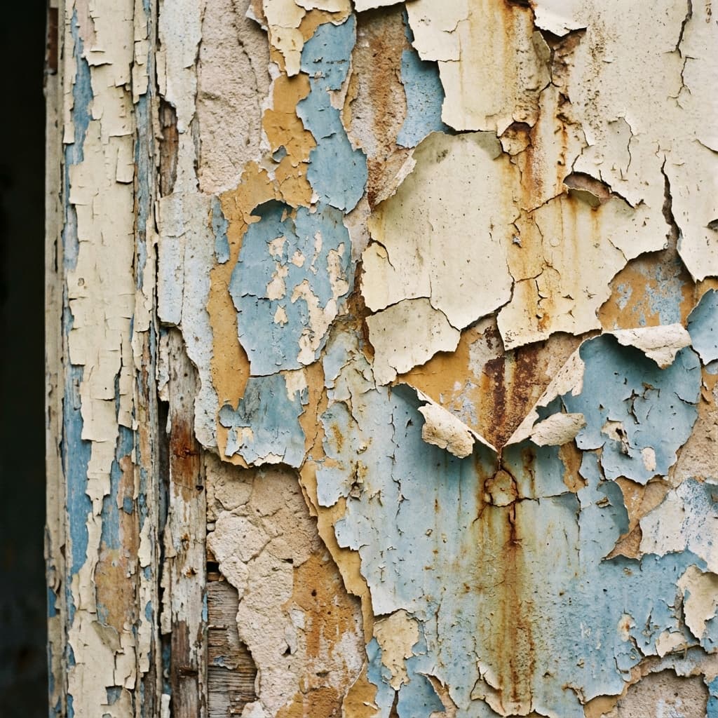Peeling paint, paint on old walls or wooden doors lifting and curling like skin
