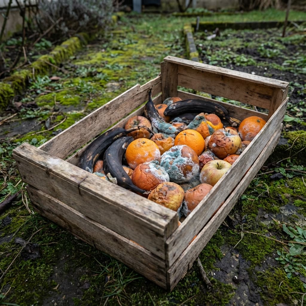 Rotten / decaying, wood or food decomposing and collapsing in shape