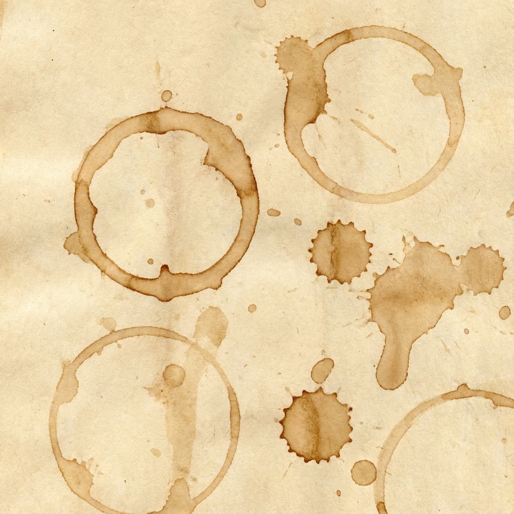 Stained, a state where coffee marks or ink have soaked in and won’t come off